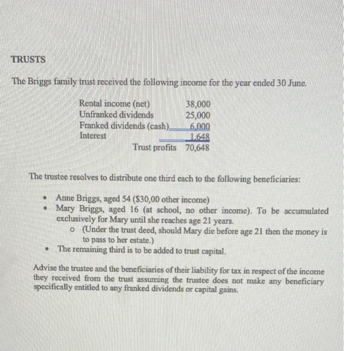 Trusts The Briggs Family Trust Received The Following Chegg Com